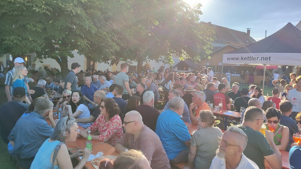 Das sommerliche Wetter bescherte den Veranstaltern bis in die Abendstunden einen großartigen Zuspruch. Der Biergartenbetrieb mit Kaffee und Kuchen wurde ergänzt durch eine Weinauswahl sowie eine Sekt- und Aperolbar. Kulinarische Schmankerl inklusive Holzofenpizza bereicherten das Angebot. Für Kinder wurde ein Kasperltheater aufgeführt. Die "Kistl-Musikanten" sorgten für die musikalische Umrahmung, gefolgt von der Formation "De3", die mit modernen Tönen das Publikum begeisterten.