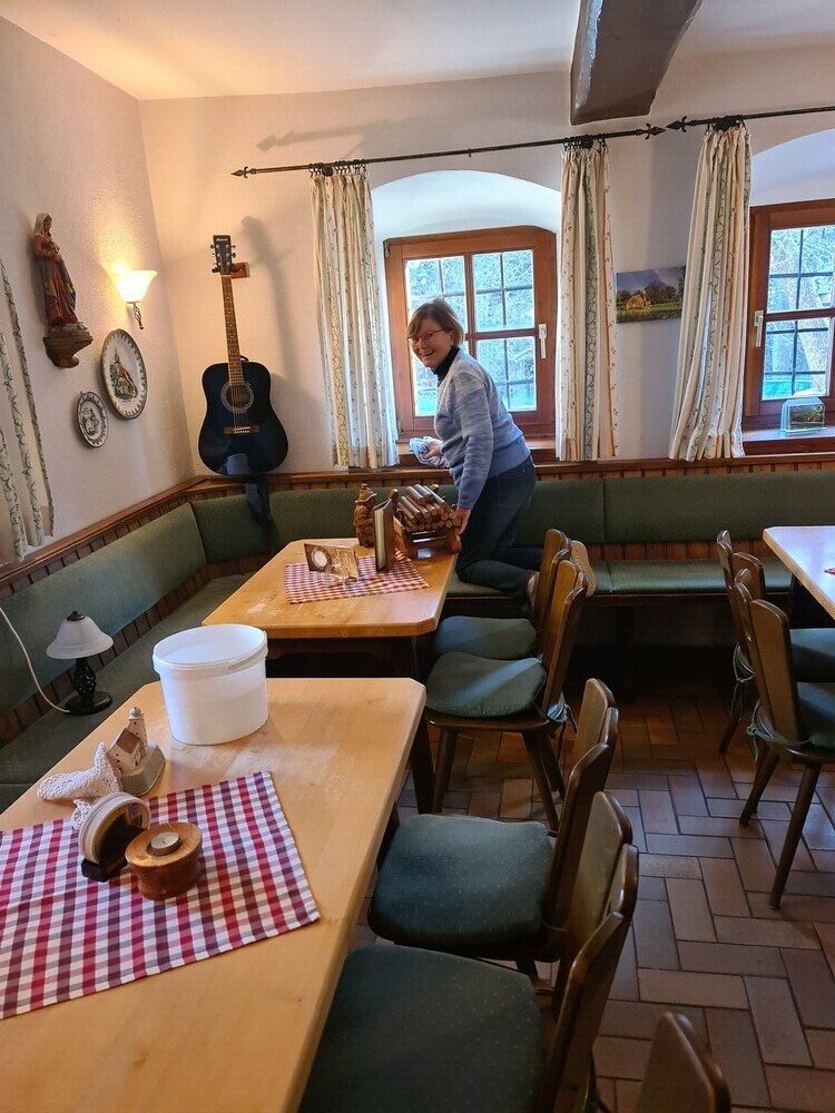 Parallel zum Weihnachtsbaumaufstellen wurde auch oben an der Klause bei eisigen Temperaturen fleißig geschuftet. Innen wurde gründlich geputzt, draußen reichlich Laub geharkt und verräumt, einiges an Holz verarbeitet und auch noch die Außenmöbel in ihr Winterquartier gebracht.