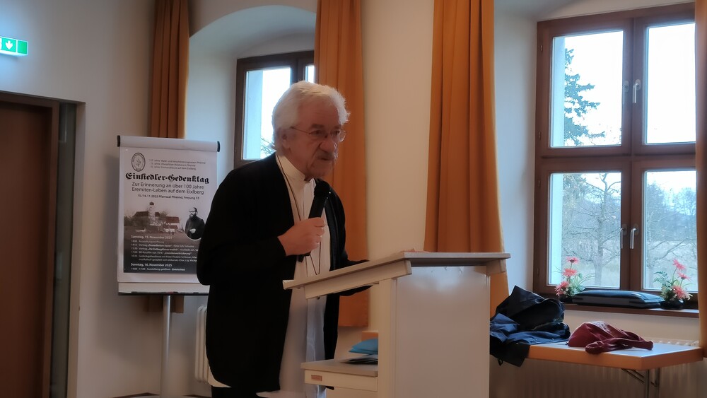 Vor nunmehr fast einem halben Jahrhundert hat der letzte Einsiedler, Bruder Josef Plaschko, die Klause auf dem Eixlberg verlassen. Das die frommen Klausner in der Bevölkerung nach wie vor unvergessen sind, das beweist der volle Pfarrsaal beim Einsiedler-Gedenktag, den der Pfreimder OWV am vergangenen Samstag (15.11.2025) veranstaltete. Ziel war es, in dankbarem Andenken die gottergebenen Männer zu ehren, welche ein überaus karges Leben auf sich nahmen, um unermüdlich im Stillen zu beten – gerade auch für uns und unsere Heimat. Seit den 80er Jahren nun betreibt der Waldverein in der ehemaligen Klause sein Vereinsheim.